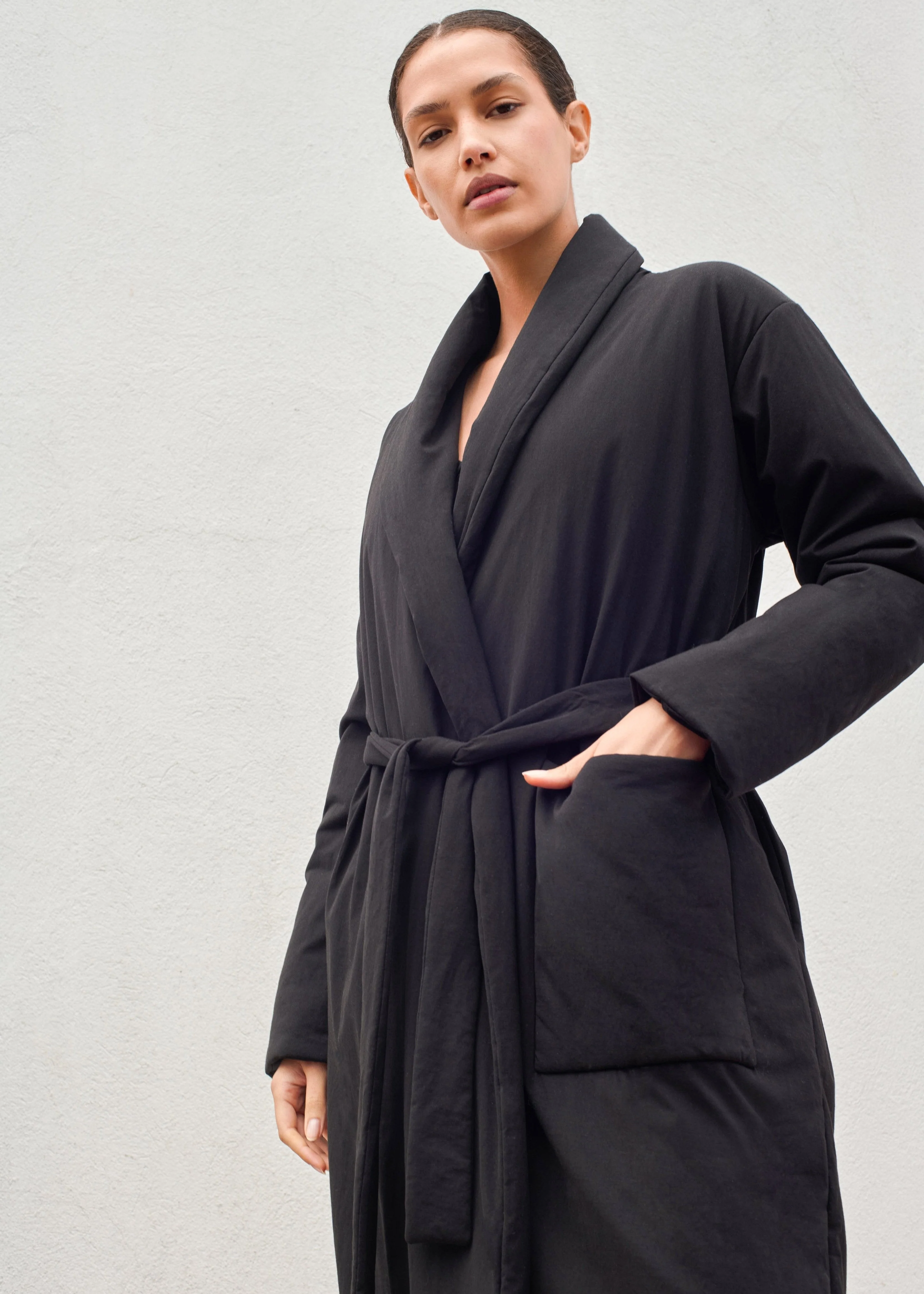 Indulge in ultimate comfort with our Oasis Robe made from 100% Organic cotton jersey. Keep the cozy feeling of your bed with you all day long with our updated, lightly padded duvet design. Perfectly adjustable with a waist belt, and equipped with 3 convenient pockets for all your essentials. Experience luxury and relaxation every time you slip into our Oasis Robe.