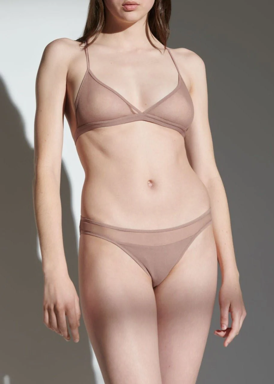 The Onyx Bikini is crafted from our signature, ultra-soft organic Pima cotton and features a delicate English cotton tulle front design detail. No synthetic poly tulle, it's all cotton trim.